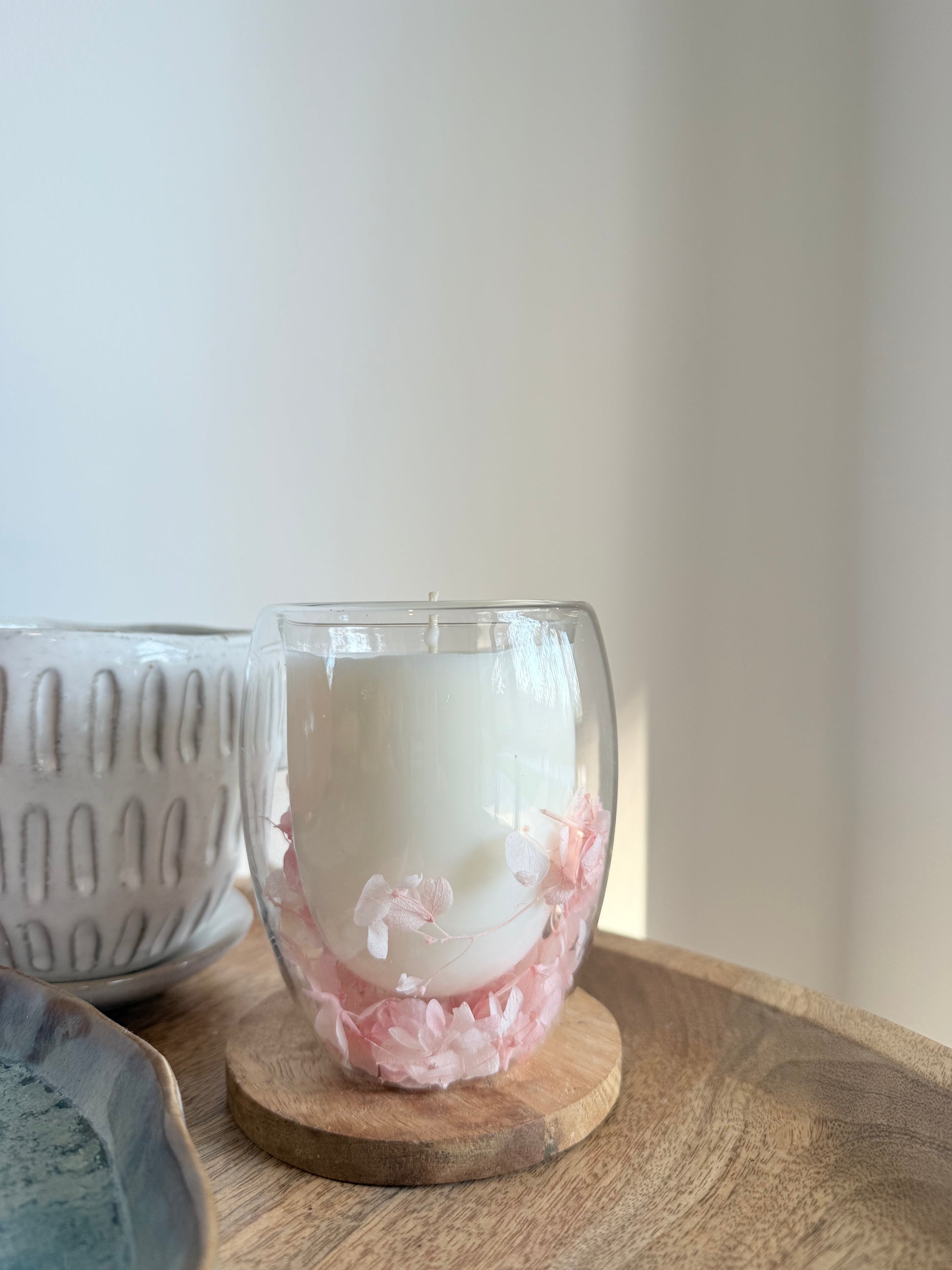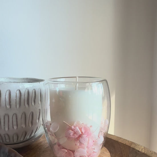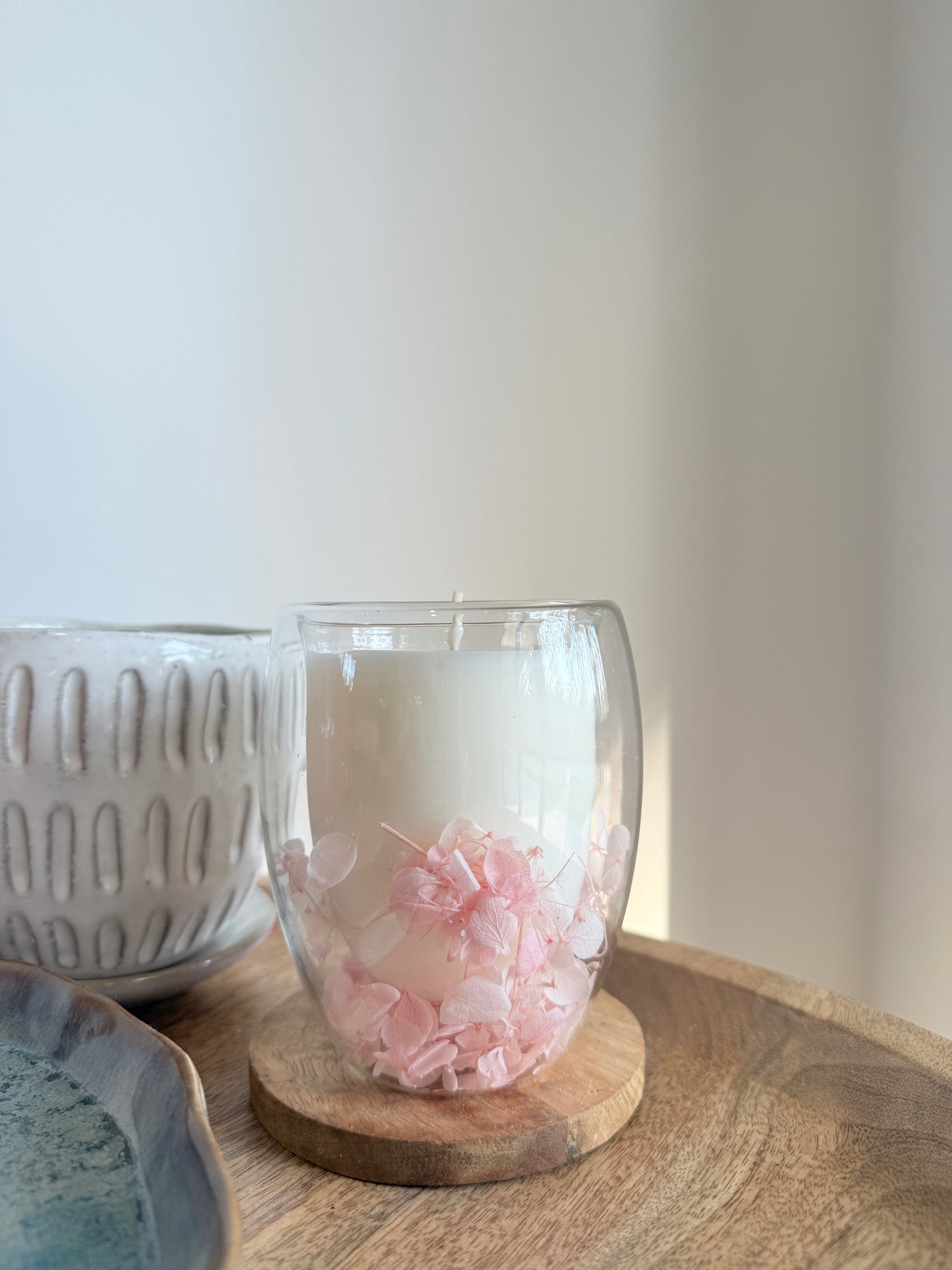 Delicate, feminine, and utterly enchanting, our Pink Hydrangea Candle brings the beauty of fresh blooms into your home. Hand-poured in coconut soy wax, each candle features a layer of light pink hydrangea petals nestled around the wax, creating a soft, floral display as it burns.