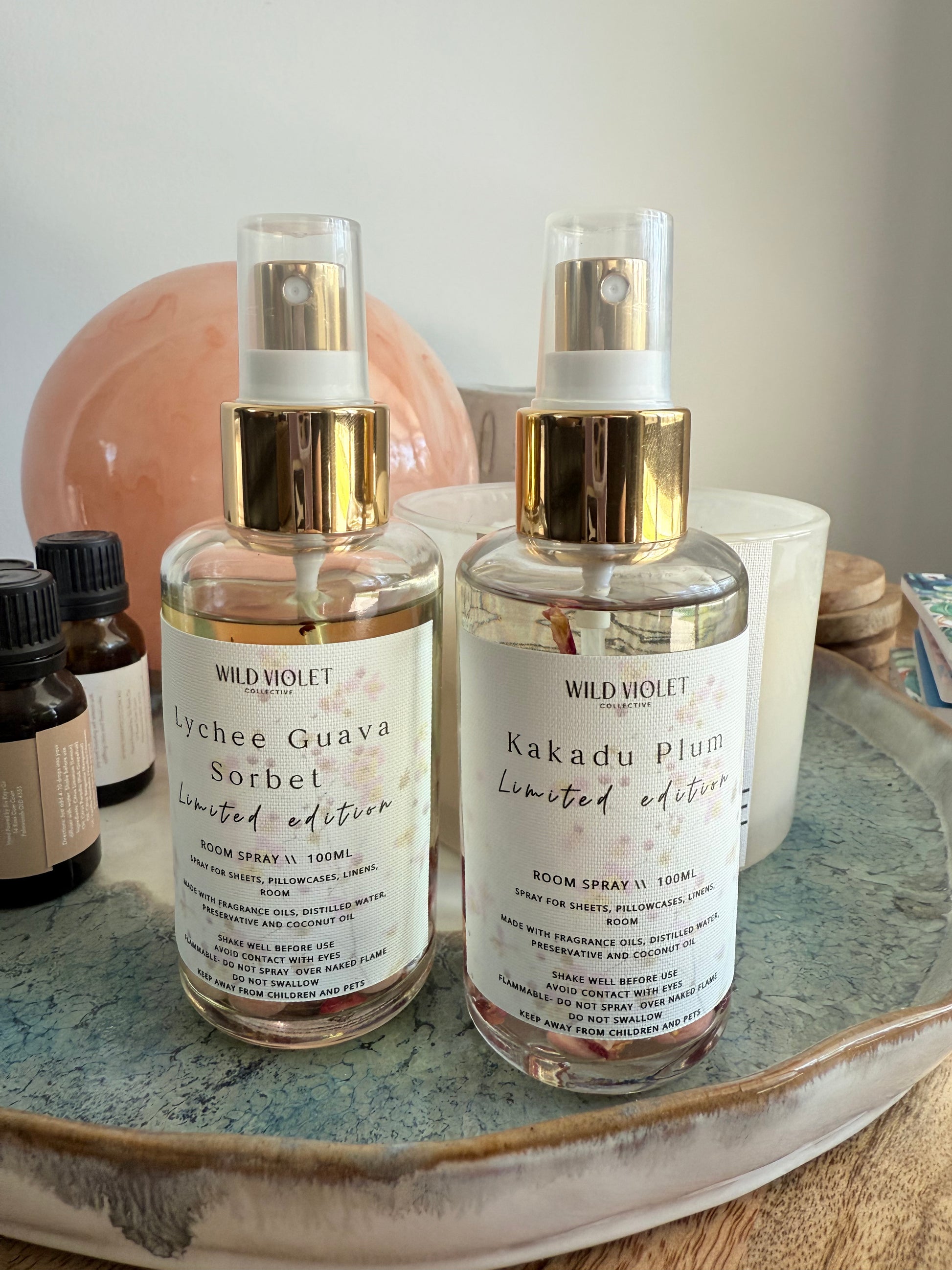 Transform your space with an enchanting floral, fresh or woody aroma now available in our new 100ml Room Sprays.